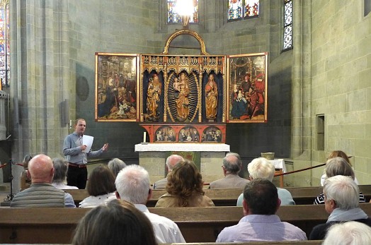 Der Theologe und Historiker Alexander Baimann setzt sich auf die Spur des Mutterkornpilzes und nimmt bei seinem Vortrag in der Wiesenkirche die Zuhörer mit auf eine spannende Recherchereise, die auf nur wenige schriftliche Überlieferungen aufbauen kann. So ist der Anbau von Roggen im Mittelalter für die Soester Börde belegt. Und auch Krankheiten hat es hier gegeben. Als „grott sterff oder pestilentia“ geben sie aber keinen Hinweis auf die Art der Erkrankung.